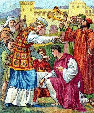 We learned in the study of the books of Samuel that God wanted to be the King over Israel, only Israel wanted a man to rule over them. Someone that they could see, talk to, and was human just like they were. All the nations around them had their kings, and those heathen nations had someone to give their devotion to. Prior to the time of king Saul, God ruled Israel through the priesthood, and the priesthood had both the responsibilities for the religious duties of the sacrifices and teaching; as well as that of the judge and governing the people. These are what we would call, "Church" and "State" today. Israel had thirteen priests that governed over them, from the time of coming out of the wilderness, to the time of Eli the last Judge. When Eli became very old, his sons set their own standards and requirements, and violated the laws that God set down at the mouth of Moses. Because of this, the people cried out for a king, and God granted them their wish. When Eli died, Samuel became the priest and assumed the duties of transferring the duties of State from the priesthood to a Monarchy, and Samuel anointed Saul as God's choice to be the king of His people. The book of I Samuel dealt with the establishing of the separation of Church and State, and the reign of Saul's monarchy. It ended with the death of Saul and Jonathan, his son, in battle. Saul was a bad king while he ruled, and thus Samuel anointed another man to be king, for God told Saul that his son would not assume the throne at his death. So at the start of the Book of II Samuel we see David assuming his anointed role as king over all Israel. David is called a man after God's heart, and though he made a few mistakes, David always tried to please God in all that he did. The book of II Samuel was written about the family of David. It did not withhold any of the gruesome detail of David's family troubles. In David's life he caused many men to be killed by his sword. That killing started with the giant Goliath, and continued onto the battlefield with thousands being killed. Thus God did not allow David to build his temple. The books of Samuel closed out with David a very old man, and that is where this "First book of Kings" starts. The important thing that we must remember is that God made a promise to David, that another King would come through his lineage. That King is the Lord Jesus Christ. The timeframe of the two books of Kings covers a time period of approximately 455 years. It starts out in the year 1015 B.C., (when you take into consideration the one hundred and ten year correction as laid out in the Companion Bible in Jeremiah 25). It is basically history, however, when Father spoke there was an inner meaning of wisdom or type that students of the Word are to pay attention to. So let's now go into the book of First Kings. I Kings 1:1 "Now king David was old and stricken in years; and they covered him with clothes, but he gat no heat." These clothes that they covered David with were bed clothes. David was a very old man at this time, and it was very difficult to keep his body temperature up. I Kings 1:2 "Wherefore his servants said unto him, "Let there be sought for my lord the king a young virgin: and let her stand before the king, and let her cherish him, and let her lie in thy bosom, that my lord the king may get heat." These "servants" were the medical people that tended to David. Believe it or not, this was how the medical mind thought for that day. When a strong younger person was near an older person, the older person would draw strength from the younger. This line of thinking just isn't taught anymore. So it was determined that a young virgin should be brought in to give warmth comfort to David in his aging years. I Kings 1:3 "So they sought for a fair damsel throughout all the coasts of Israel, and found Abishag a Shunammite, and brought her to the king." We will see in later verses that this girl was a very beautiful young lady. We will see that she will cause David's fourth son a lot of trouble. So David now has his bed warmer. I Kings 1:4 "And the damsel was fair, and cherished the king, and ministered to him: but the king knew her not." Though this damsel was to share the bed of David, she was there to give warmth and comfort to David only. This relationship was never considered a binding marriage, nor consummated as the relations between a husband and wife. Her duty was to wait on David, and give the king warmth when it was required. This will come up again, and so it is an important point that this was not a marriage. I Kings 1:5 "Then Adonijah the son of Haggith exalted himself, saying, "I will be king:" and he prepared him chariots and horsemen, and fifty men to run before him." Adonijah is David's son by Haggith, born at Hebron while his father was king of Judah. 2 Samuel 3:4. "Adonijah" is pronounced "Adoni-yah", which has the sacred name of our Heavenly Father in it. It means "my Lord is Yah [God]". Adonijah wanted to become king, and so he is going to set up an illusion before the public that he will be the new king when his father dies. After all, David is old and about to die, and Adonijah is the fourth son of David. Remember that the first three sons of David; Amnon, Caleb and Absalom are now dead, which leaves room for the fourth son of David to assume the role of king. However, David had made other promises and commitments that the throne would go to Solomon at his death. I Kings 1:6 "And his father had not displeased him at any time in saying, "Why hast thou done so?" and he also was very goodly man; and his mother bare him after Absalom." As Adonijah paraded around the town of Jerusalem presenting himself as the next king, David did not say one word that this would not be. The main reason that David said nothing about this as it was being done, was that David did not know about it. Absalom was the next in line to be king, except Joab had killed Absalom in battle as he hung by his hair from a tree. So 